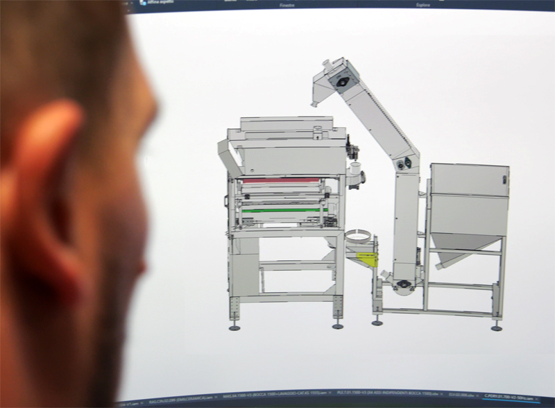 Tutte le macchine prodotte da T.G. MAC sono progettate su CAD 3D. Già in questa fase si possono avere riscontri sulle strutture, dimensioni e funzionamento.